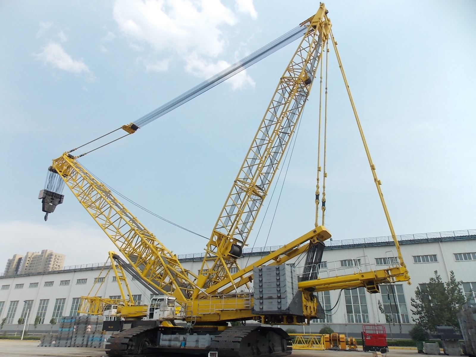 履帶式桁架臂起重機(jī),帶載能力強(qiáng),任何工況均能100%帶載行走,便于設(shè)備移動(dòng)及就位