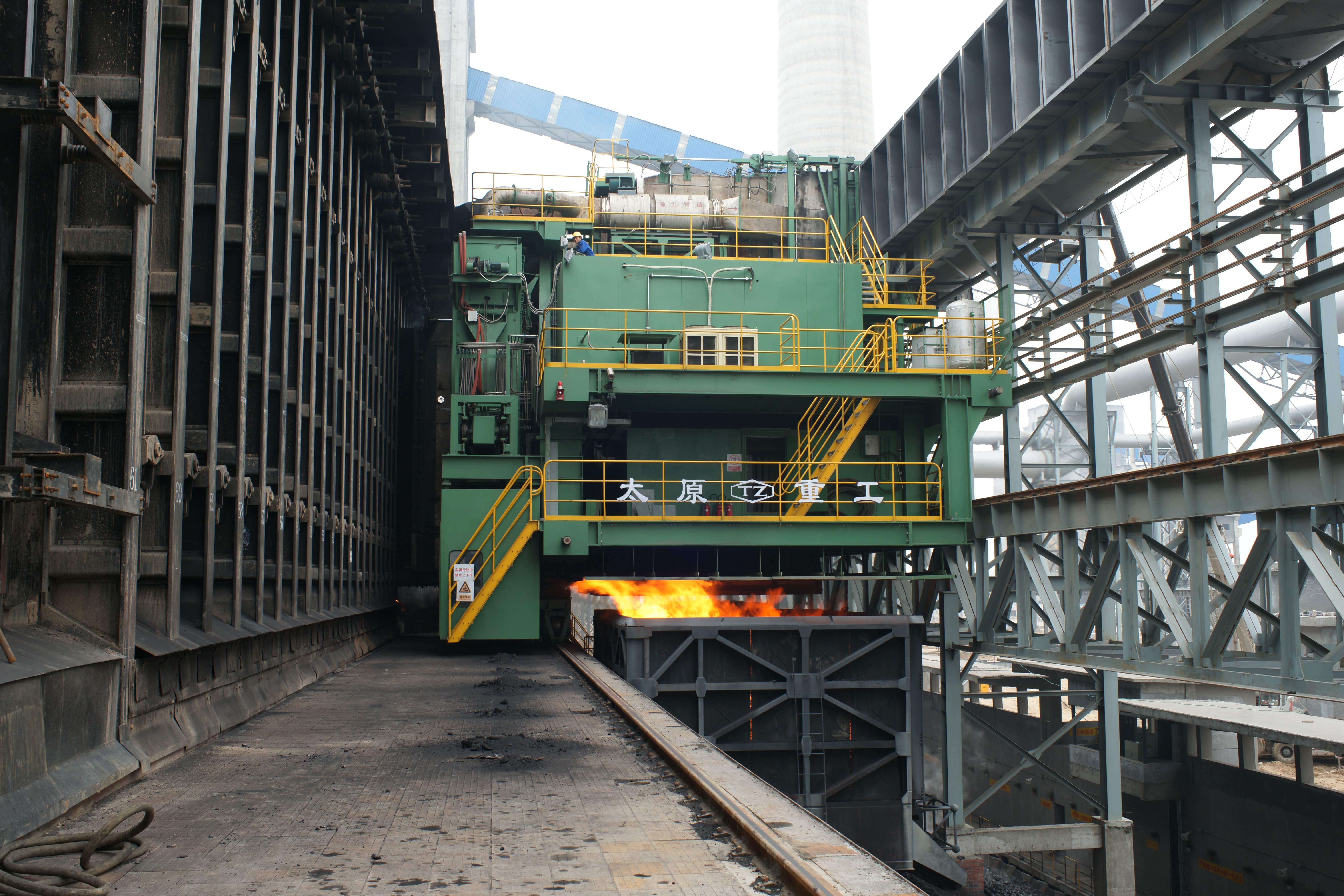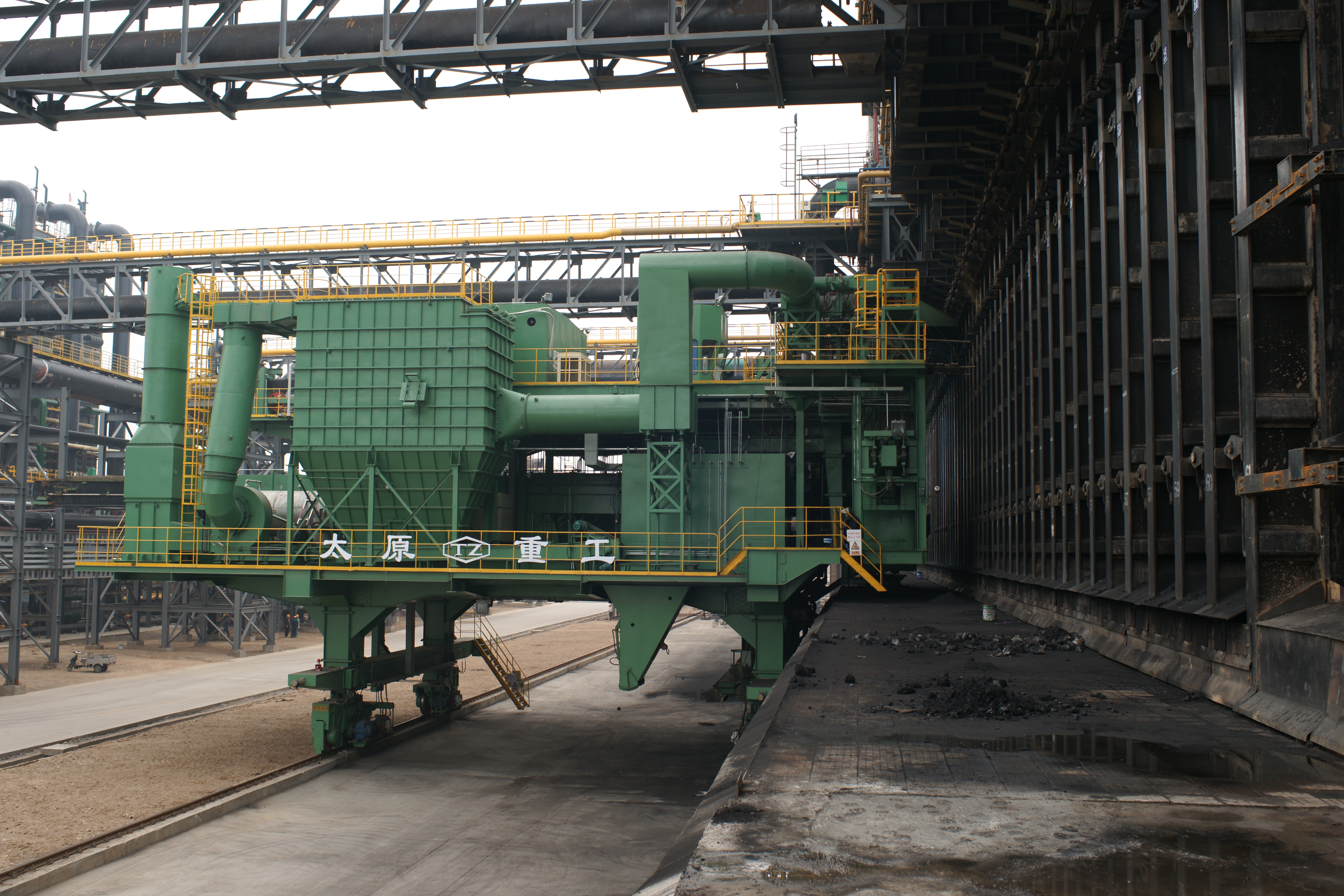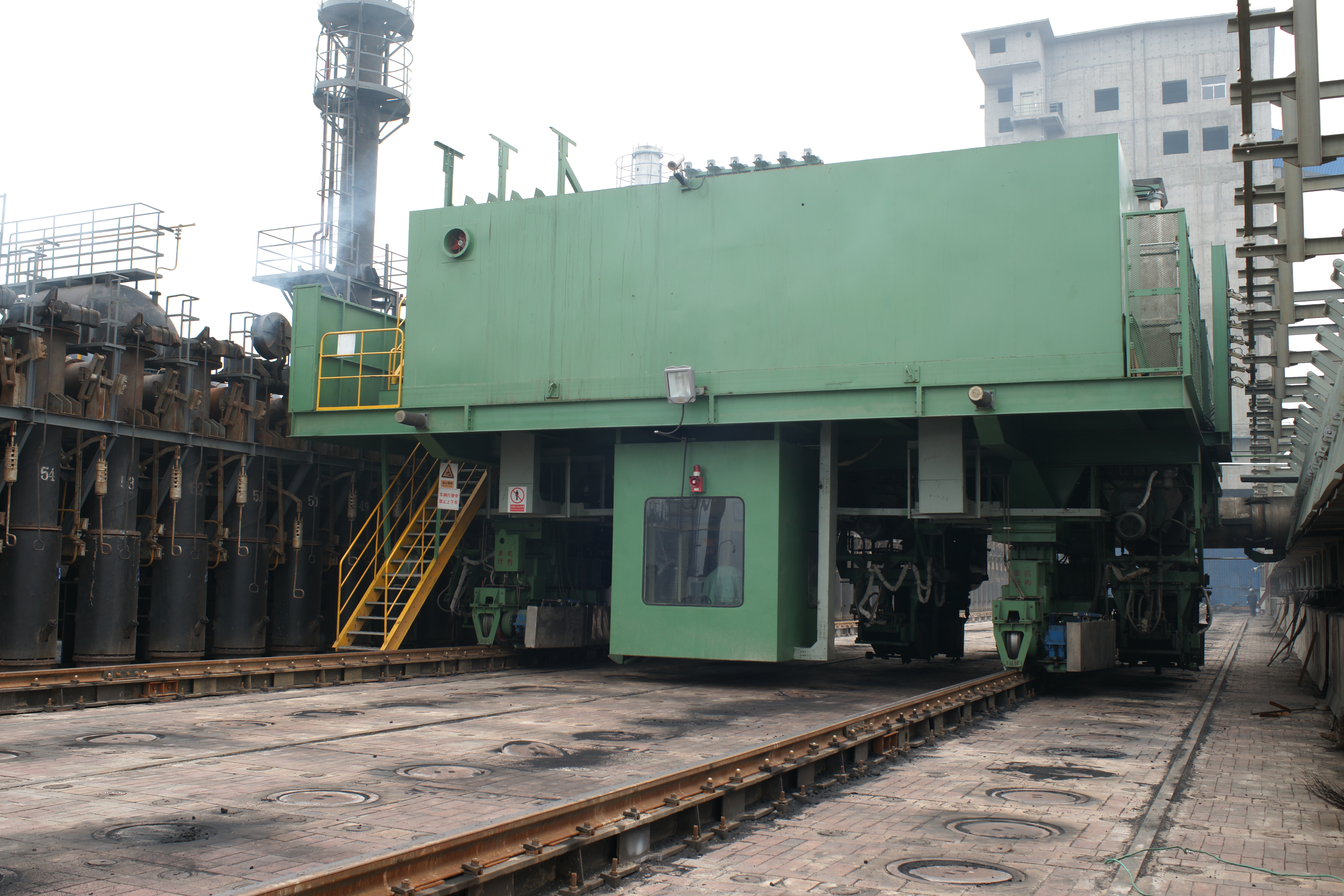 頂裝型焦?fàn)t機(jī)械設(shè)備包含頂裝煉焦流程的全套機(jī)械設(shè)備:裝煤車在煤塔下接收煤粉后運(yùn)輸至炭化室進(jìn)行煉焦;推焦車將焦炭由炭化室推送至熄焦車/焦罐車;攔焦車完成炭化室與熄焦車/焦罐車的連通;電機(jī)車是熄焦車/焦罐車的牽引設(shè)備,完成焦炭由煉焦?fàn)t區(qū)到熄焦塔/干熄焦區(qū)的轉(zhuǎn)運(yùn);熄焦車接收熾熱焦炭,并在煤塔下完成濕熄焦過程;焦罐車接收焦炭后輸送至干熄焦區(qū)域進(jìn)行干熄焦工藝