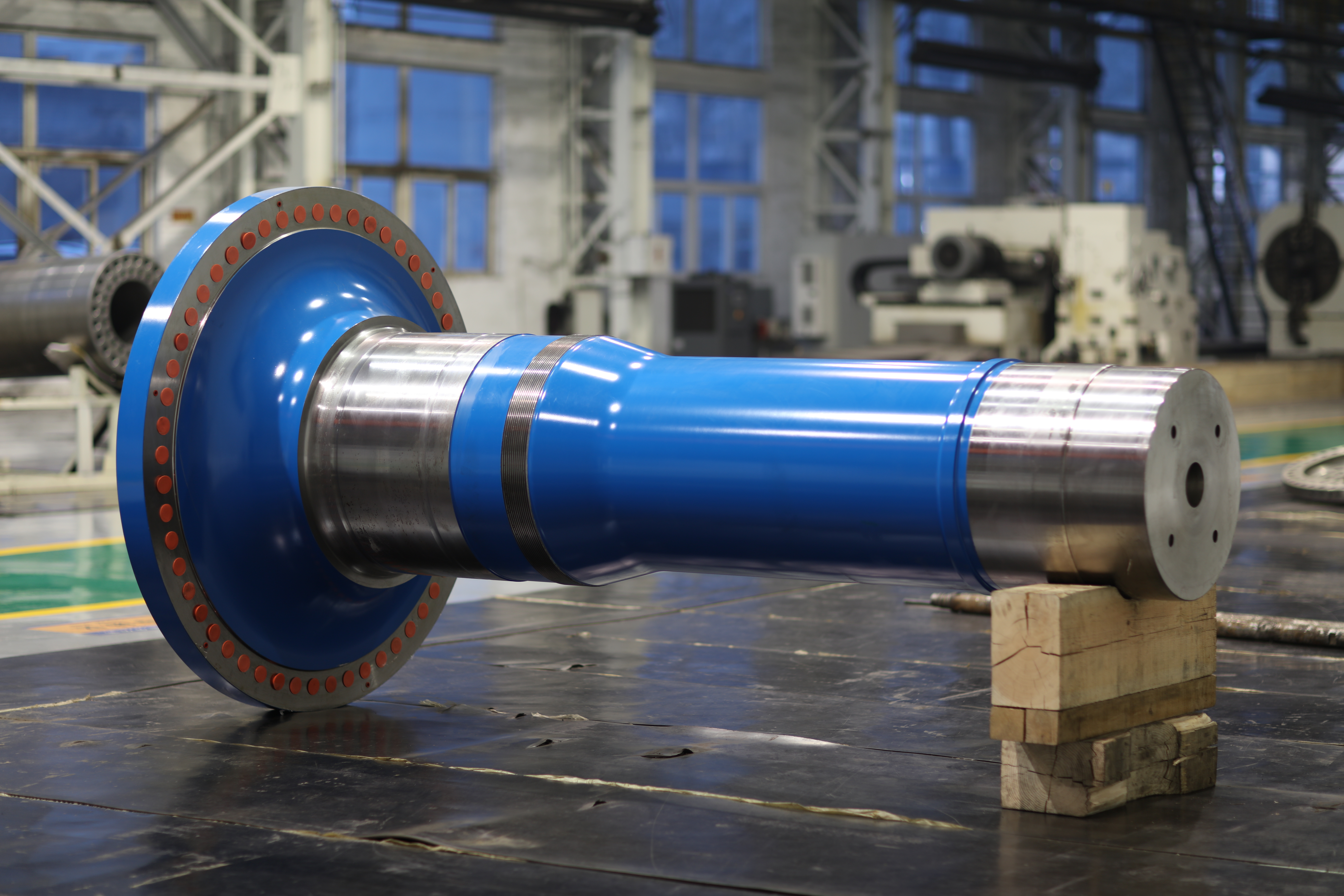 太重是國(guó)內(nèi)最早生產(chǎn)風(fēng)機(jī)軸的廠家之一,擁有先進(jìn)的專業(yè)化風(fēng)機(jī)主軸精加工生產(chǎn)線,現(xiàn)有數(shù)控車床7臺(tái)、磨床1臺(tái)及相應(yīng)的恒溫加工車間、清洗室、噴砂室、熱噴鋅室、噴漆室、烘干室及除塵系統(tǒng)等,設(shè)備按照西門子審核要求高標(biāo)準(zhǔn)設(shè)計(jì)建造,加工能力涵蓋6MW及以下風(fēng)機(jī)主軸的制造,整條生產(chǎn)線具備年產(chǎn)風(fēng)機(jī)主軸1200支的能力。