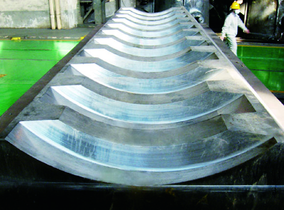 多年來,先后制造了近百件船用類鑄件,主要用戶有大連船廠、廣船國際有限公司、江蘇新時(shí)代船廠、揚(yáng)子江船業(yè)集團(tuán)等著名企業(yè),同時(shí)該類鑄件出口到韓國、德國、日本等國家。為中冶京城生產(chǎn)的32萬噸原油船掛舵臂,尺寸為10500mmX6700mmX2400mm,毛重達(dá)187噸;艉球輪廓尺寸為8472mm×2810mm×4640mm,毛重達(dá)107噸。