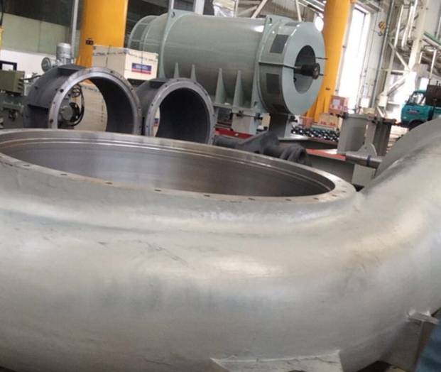 鼓風機蝸殼,成品輪廓3900mm*3650mm*1500mm,毛重20t,材質ZG07Cr19Ni9。