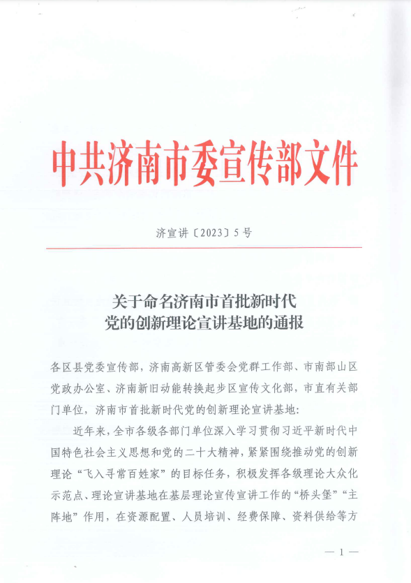 近日,中共濟(jì)南市委宣傳部印發(fā)通知,公布“濟(jì)南市首批新時(shí)代黨的創(chuàng)新理論宣講基地”名單,濟(jì)南城市投資集團(tuán)位列其中。