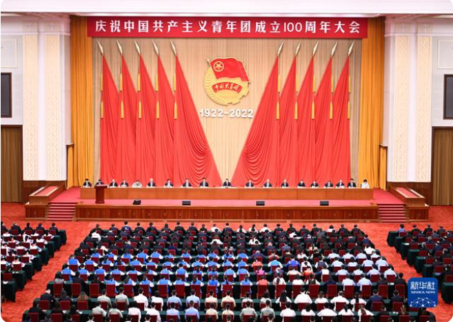 5月10日,慶祝中國共產主義青年團成立100周年大會在北京人民大會堂隆重舉行。新華社記者 翟健嵐 攝