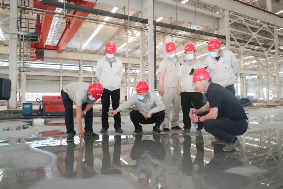 五月黃金季,施工忙正酣。廠房墻面上,“搶晴天、戰(zhàn)雨天,持之以恒保安全,精益求精保質(zhì)量,披星戴月保進度”的條幅赫然醒目、催人奮進。項目建設(shè)現(xiàn)場塔吊高聳、機聲隆隆,工人加緊施工,一派熱火朝天的忙碌景象。調(diào)研中,韓珍堂深入施工現(xiàn)場,分別察看了下料中心、焊接中心、加工裝配、油膜、電氣木模等廠房建設(shè)進度。他邊走邊了解,時不時停下腳步,仔細詢問檢查。他指出,要加強組織,強化管理,統(tǒng)籌協(xié)調(diào)各方建設(shè)力量和資源,進一步細化工程節(jié)點,全速推進工程建設(shè)。細節(jié)決定質(zhì)量,細節(jié)決定成敗。要堅持高標準、嚴要求、重細節(jié),以精益求精的精神推進工程建設(shè),用心用情用力打造無與倫比的精品工程、標桿工程、示范工程。韓珍堂還對地面硬化、道路綠化、管道優(yōu)化等細節(jié)工作提出具體要求。