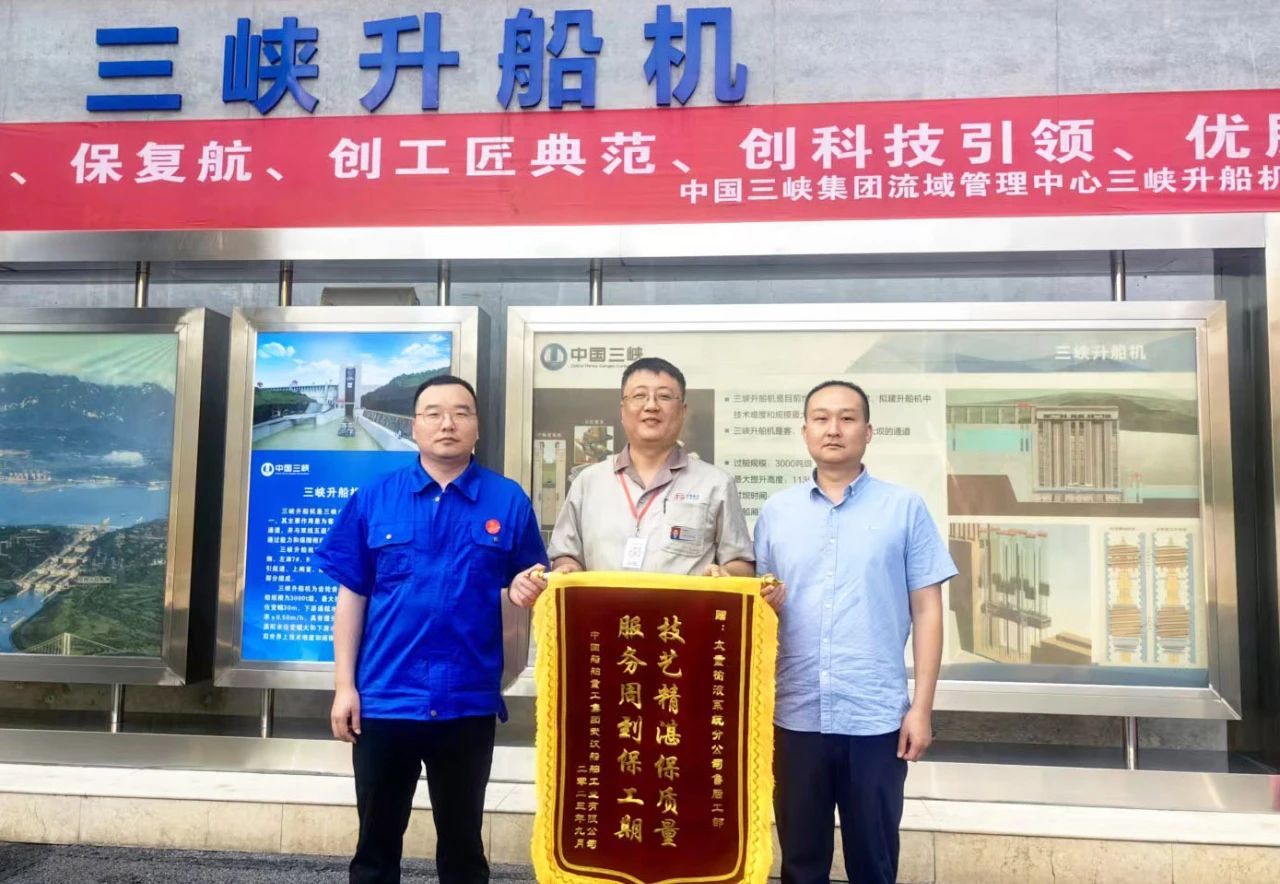 在三峽升船機(jī)2023年計(jì)劃性停航檢修項(xiàng)目總結(jié)大會上,公司服務(wù)人員雷明同志被評為“先進(jìn)個人”稱號;一面寫著“技藝精湛保質(zhì)量,服務(wù)周到保工期”的錦旗,展現(xiàn)用戶對于太重榆液售后服務(wù)工作的充分肯定和高度贊揚(yáng),“太重速度”為我國三峽項(xiàng)目的平穩(wěn)運(yùn)行再立新功!