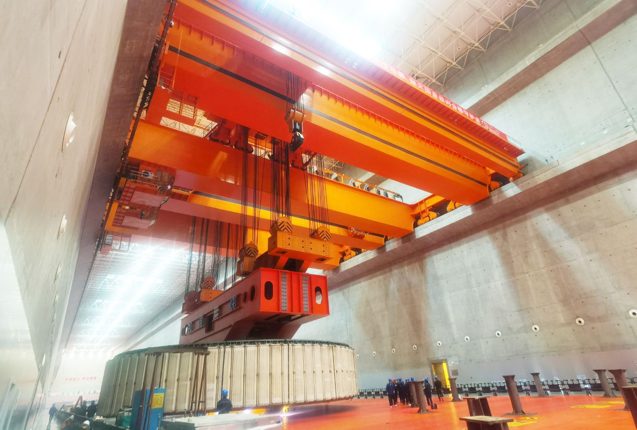隨著指揮一聲哨響,近日,在兩臺(tái)太重“TZ”橋式起重機(jī)的合力吊裝下,國(guó)內(nèi)某大型水電站2300噸轉(zhuǎn)子一次性起吊成功,圓滿完成檢修關(guān)鍵任務(wù)。這是行業(yè)內(nèi)首次由高度智能化的水電站起重機(jī)完成2000噸級(jí)以上大型起吊任務(wù),太重“智慧方案”再次成為滿足用戶需求的“金鑰匙”。