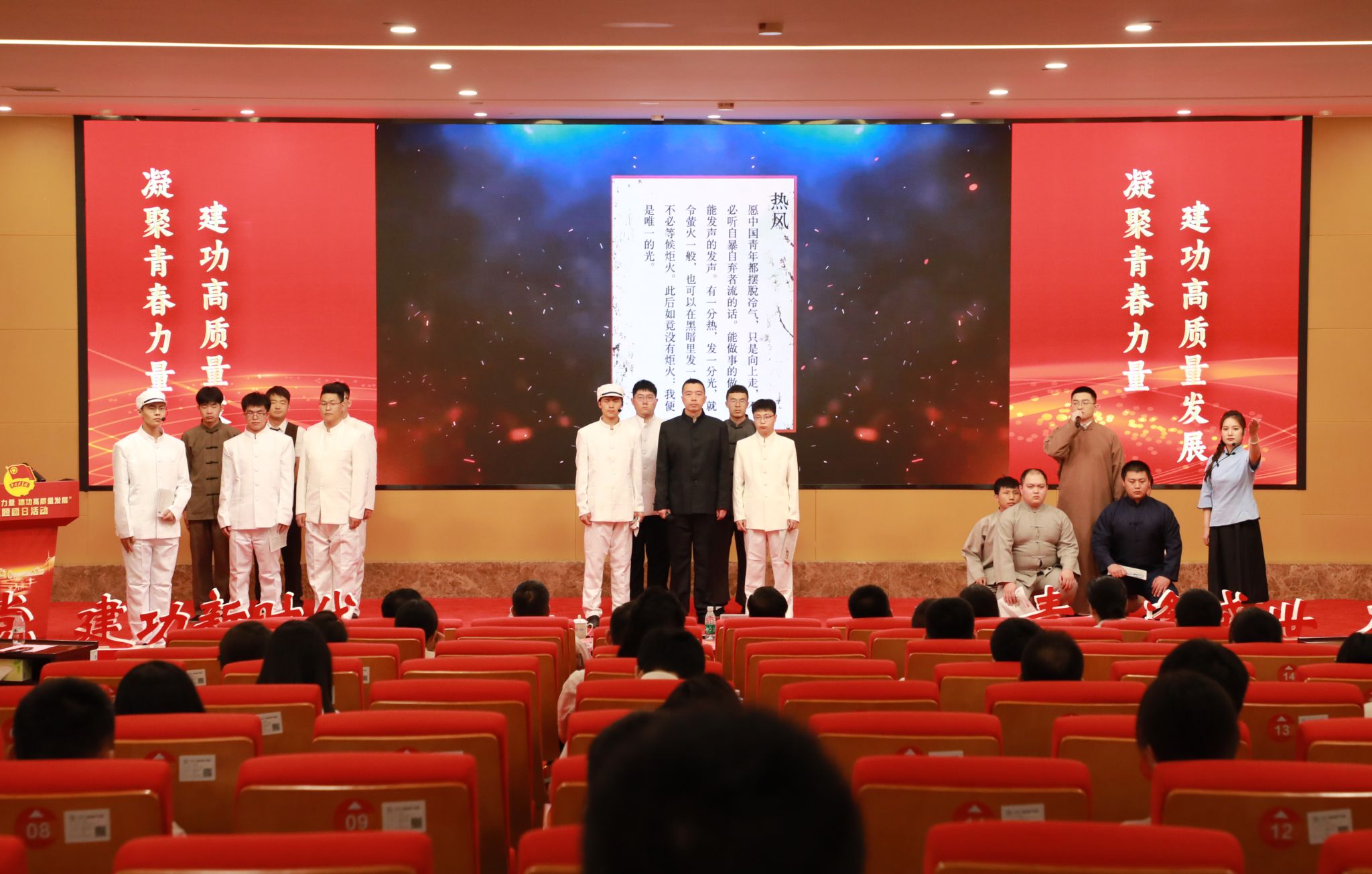 在“續(xù)寫時代華章”環(huán)節(jié),情景音詩畫《青春中國》為活動拉開序幕,或慷慨激昂、或娓娓道來,極富感染力的誦讀盡顯太重青年昂揚向上的斗志。隨后,“中華技能大獎”獲得者——太重職工樊志勤,分享了自己與神舟發(fā)射塔架之間的故事,以個人的點滴經歷鼓勵團員青年逐夢前行,也展現(xiàn)出太重積極參與國家重大工程的奉獻與擔當。