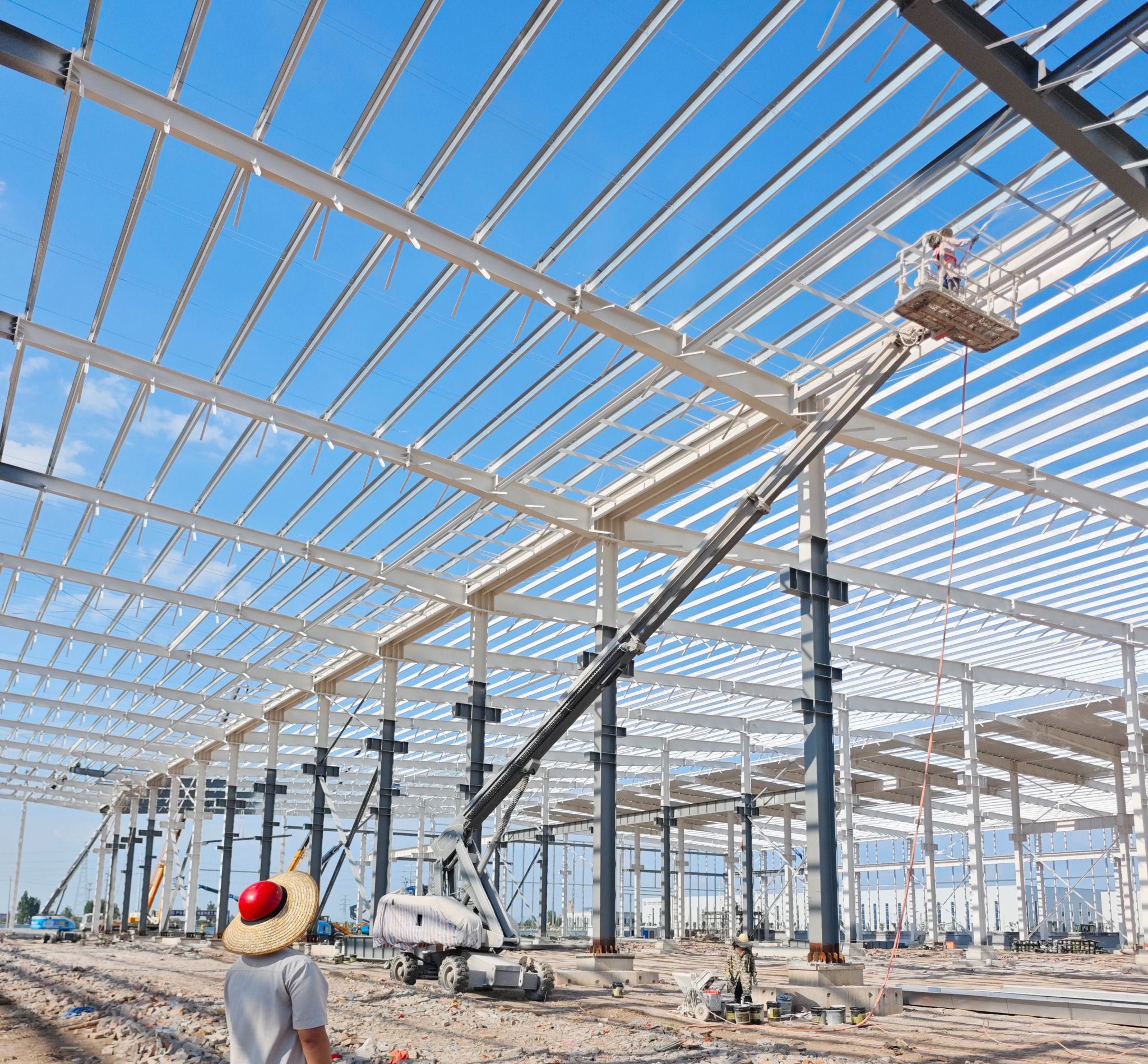 “從鋼柱首吊以來,我們按照目標節(jié)點倒排工期,精細化組織、超常規(guī)安排,正在按照‘兩個一百天’項目建設節(jié)點全力沖刺?!爆F(xiàn)場負責人王永斌干勁滿滿地說道。施工團隊根據(jù)工程建設情況精細策劃,對大型機械、吊索吊具等進行逐項驗收、統(tǒng)一管理,確保吊裝施工安全有序。為確保園區(qū)建設繼續(xù)快速推進,項目組還同步建設配電室、空壓站和綜合站房,全力以赴推動項目建設提速增效。