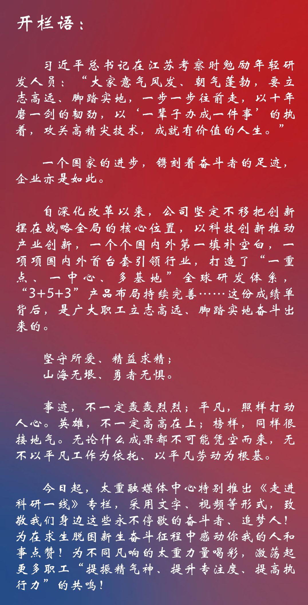 從紛繁復雜的千張圖紙到風雨無懼的考察調(diào)研,從歷經(jīng)艱辛的一線調(diào)試到用戶至上的太重速度,從以身作則的榜樣引領到潛移默化的示范影響,他們用一個個鮮活生動的小故事,詮釋了一線研發(fā)設計人員的堅守和不易。記者深深地感受到,這樣一支充滿無限奮斗的研發(fā)團隊,不僅擁有強大的凝聚力和向心力,還擁有逐綠追新的魄力和擔當。下面,就讓我們跟隨記者的鏡頭走進上海研發(fā)團隊的奮斗故事。