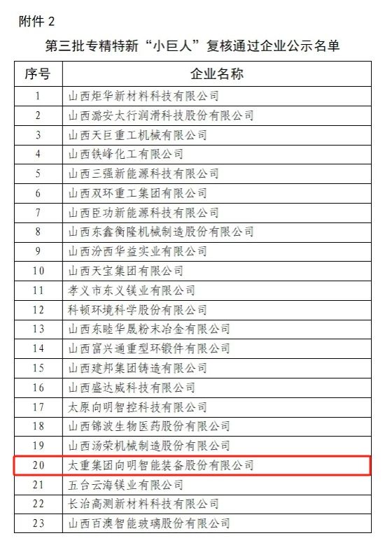 太原重工軌道交通設(shè)備有限公司成功入選第六批專精特新“小巨人”企業(yè),這是軌道公司繼2022年入選山西省專精特新企業(yè)后,完成的又一次榮譽進階。如果說“燈塔工廠”是行業(yè)標(biāo)桿引領(lǐng),那這份來自國家級的認(rèn)可同樣分量十足。此外,在此次的名單中,太重集團向明智能裝備股份有限公司順利通過第三批專精特新“小巨人”企業(yè)復(fù)核。
