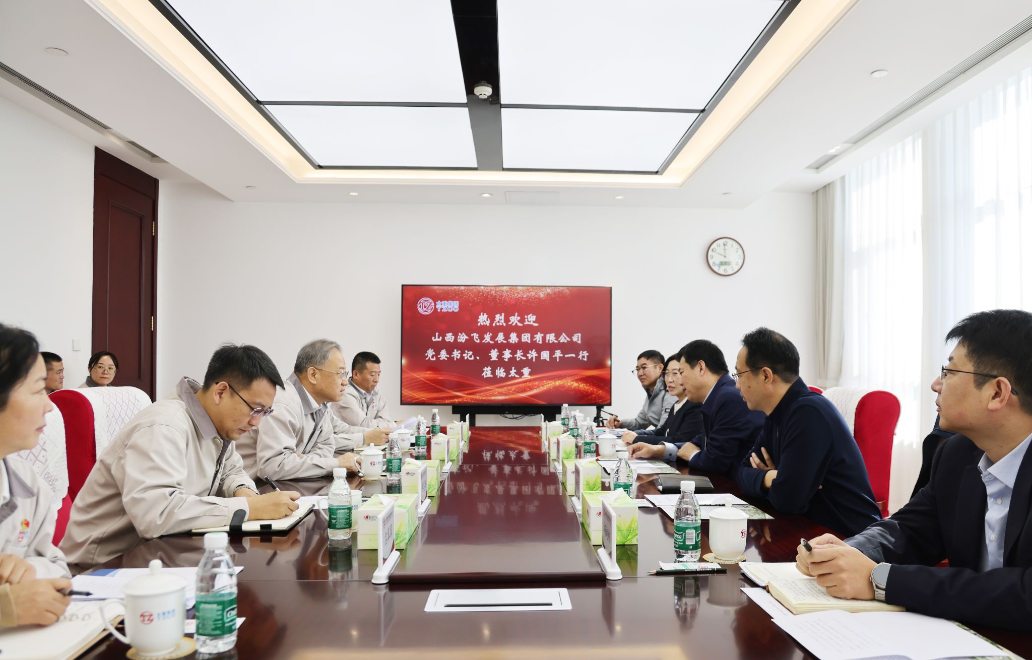 10月28日,集團(tuán)公司黨委書(shū)記、董事長(zhǎng)韓珍堂熱情接待了山西汾飛發(fā)展集團(tuán)有限公司黨委書(shū)記、董事長(zhǎng)許國(guó)平一行,雙方圍繞持續(xù)拓寬合作領(lǐng)域、提升合作層次、創(chuàng)新合作方式展開(kāi)深入交流。