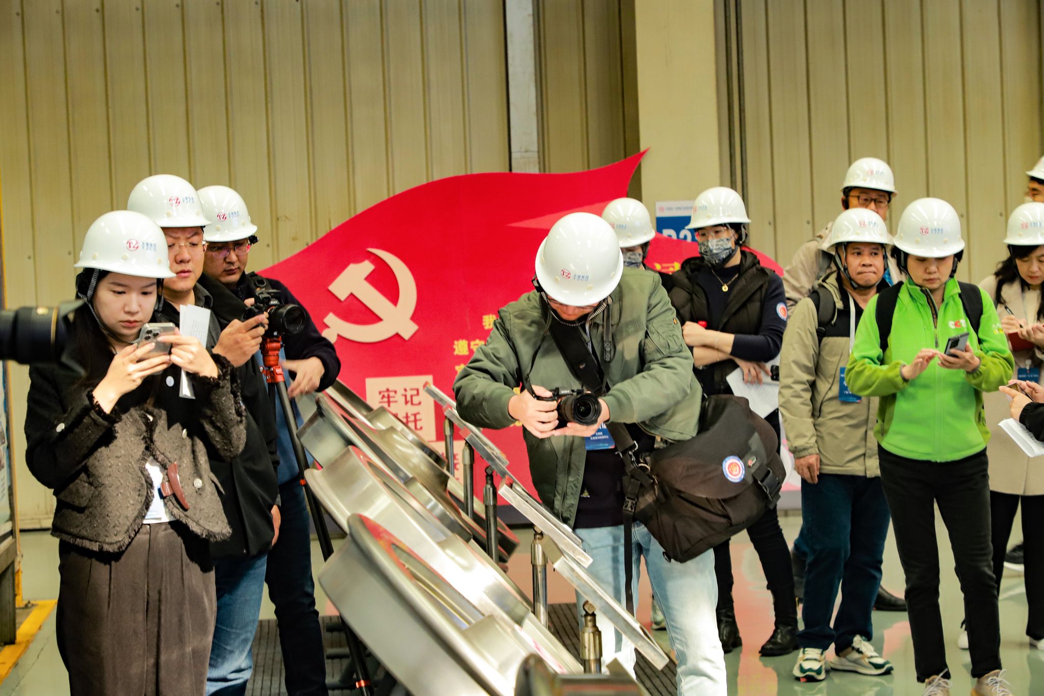 這是全國(guó)新聞界采編骨干“‘四力’實(shí)踐”山西行的第一站。記者們一到場(chǎng),就迫不及待地架起相機(jī)、調(diào)整鏡頭、捕捉每一個(gè)精彩瞬間。長(zhǎng)槍短炮、鏡頭閃爍,現(xiàn)場(chǎng)氣氛非常熱烈。