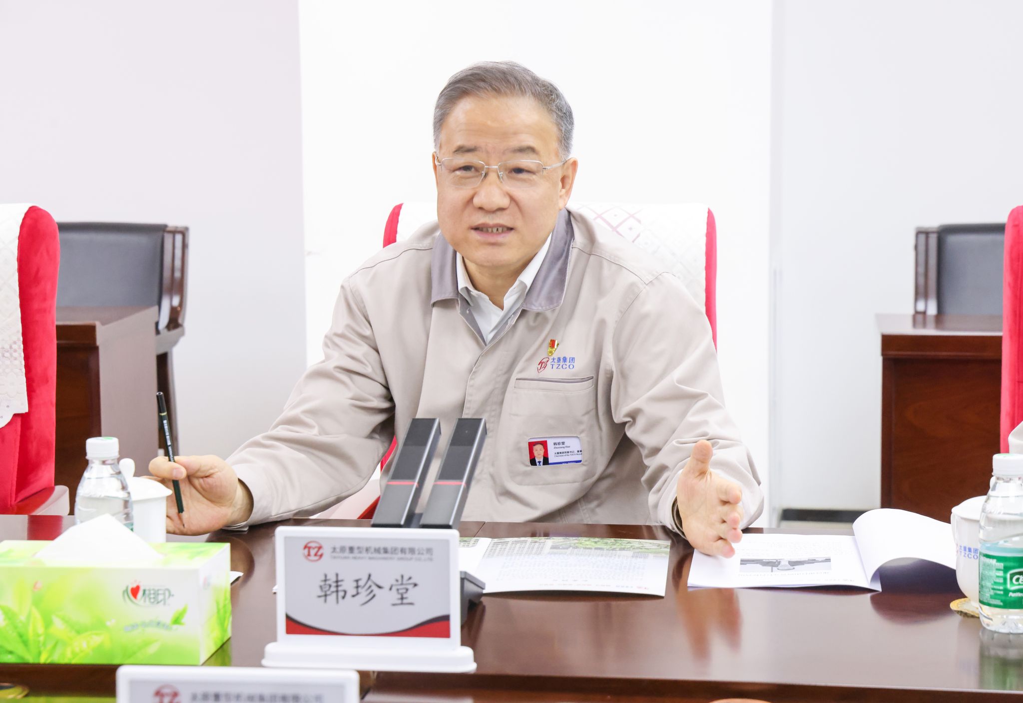 韓珍堂對(duì)客人一行的到來表示熱烈歡迎,對(duì)建行山西省分行長期以來的高度關(guān)注和大力支持表示感謝,并簡要介紹了公司改革發(fā)展、產(chǎn)業(yè)布局、科技創(chuàng)新、國際化推進(jìn)、人才隊(duì)伍建設(shè)等方面的情況。他說,在省委、省政府的關(guān)心和支持下,太重聚焦發(fā)展新質(zhì)生產(chǎn)力重點(diǎn)任務(wù),不斷加大研發(fā)投入,積極引進(jìn)高科技人才,依托全國重點(diǎn)實(shí)驗(yàn)室和國家級(jí)企業(yè)技術(shù)中心,構(gòu)建起“一重點(diǎn)、一中心、多基地”技術(shù)研發(fā)體系。當(dāng)前,公司的礦用挖掘機(jī)、工業(yè)起重機(jī)、冶金裝備等傳統(tǒng)產(chǎn)品實(shí)現(xiàn)“老樹發(fā)新芽”,市場(chǎng)地位持續(xù)提高;軌道交通、高端液壓件等戰(zhàn)新產(chǎn)品不斷突破“卡脖子”技術(shù),國產(chǎn)化替代穩(wěn)步推進(jìn);工程挖掘機(jī)、工程起重機(jī)、新能源叉車、寬體車等批量產(chǎn)品集群發(fā)展,行業(yè)影響力快速提高。同時(shí),公司堅(jiān)持全球化戰(zhàn)略和國際化視野,不斷加快“走出去”的步伐,建設(shè)具有國際一流競(jìng)爭力的現(xiàn)代智能裝備制造企業(yè),太重勢(shì)頭強(qiáng)勁、信心十足!裝備制造業(yè)的發(fā)展離不開金融系統(tǒng)的支持,雙方合作友誼深厚、發(fā)展空間廣泛,希望以本次交流為契機(jī),充分發(fā)揮各自優(yōu)勢(shì),相互賦能、共同發(fā)展,在扎實(shí)推進(jìn)中國式現(xiàn)代化山西實(shí)踐中,打造互利共贏的銀企合作新典范。