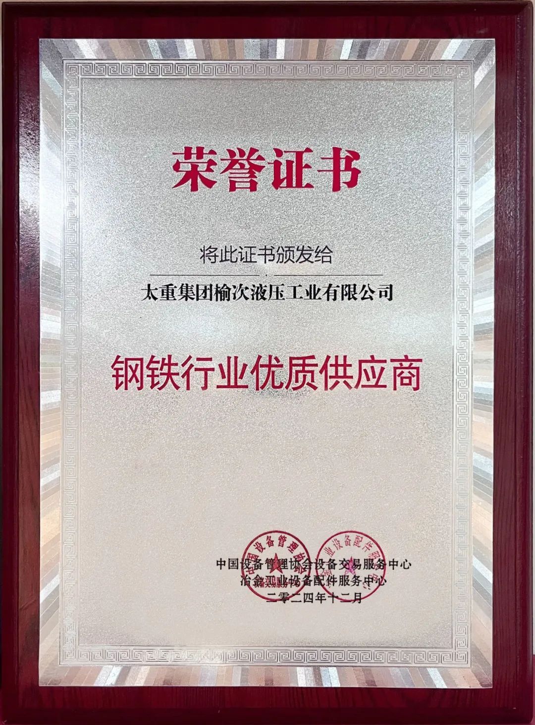 近日,在中國設(shè)備管理協(xié)會主辦的鋼鐵設(shè)備更新推進會上,太重榆液首次獲得“鋼鐵行業(yè)優(yōu)質(zhì)供應(yīng)商”榮譽,這是太重榆液著力推動高質(zhì)量高速度發(fā)展、加快實施創(chuàng)新驅(qū)動取得的又一豐碩成果。