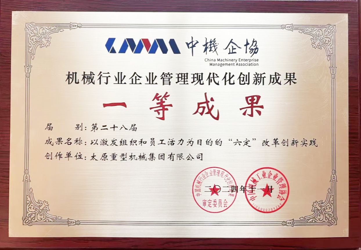 太原重型機(jī)械集團(tuán)有限公司蟬聯(lián)上榜中國(guó)機(jī)械500強(qiáng);太重“‘六定’改革創(chuàng)新實(shí)踐”項(xiàng)目榮獲機(jī)械行業(yè)企業(yè)管理現(xiàn)代化創(chuàng)新成果一等成果;太重榆液喜獲“管理基礎(chǔ)工作規(guī)范化達(dá)標(biāo)企業(yè)”稱(chēng)號(hào)。各類(lèi)獎(jiǎng)項(xiàng)統(tǒng)統(tǒng)“拿捏”