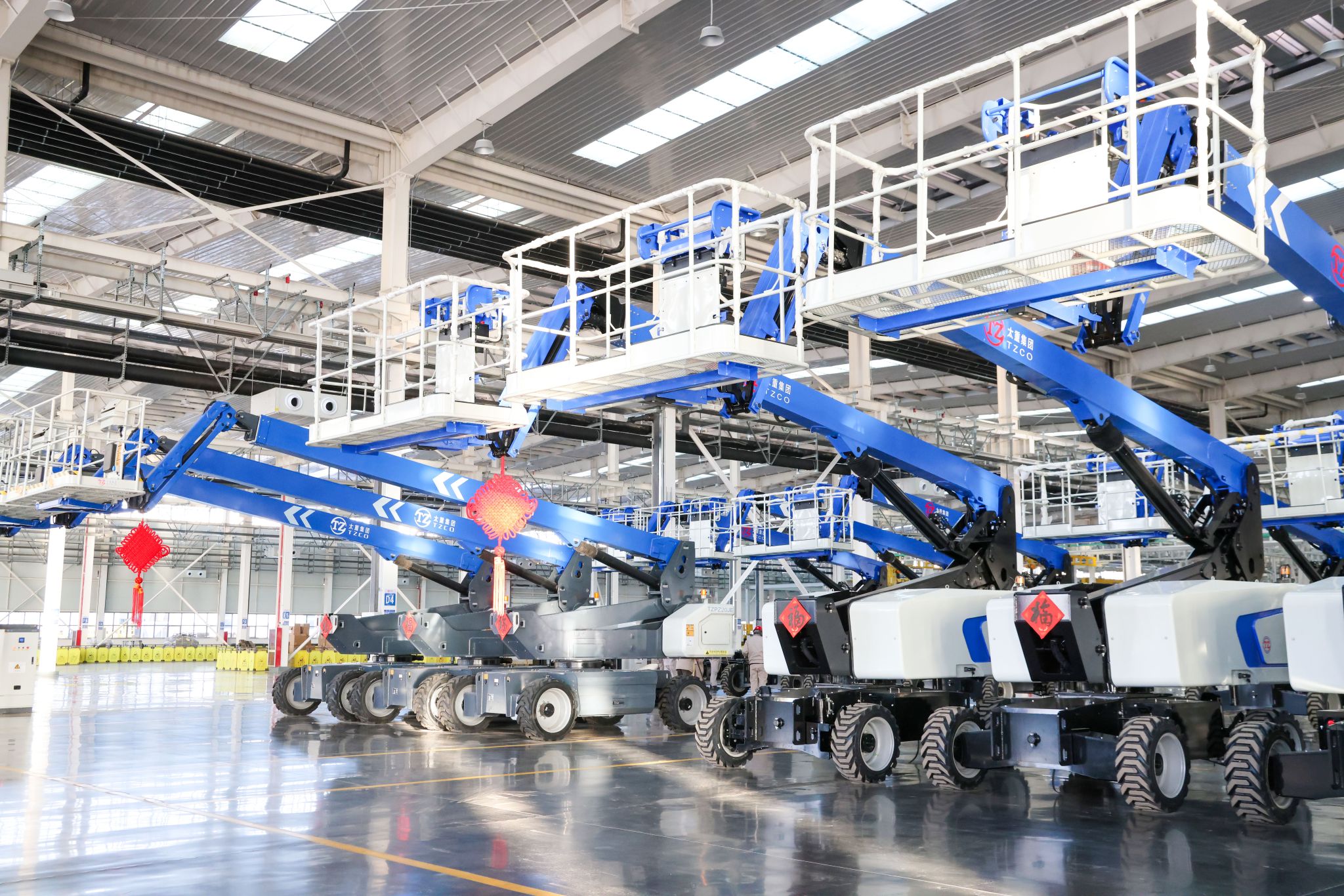 工程起重機(jī)園區(qū)項(xiàng)目是公司在建重點(diǎn)工程,是太重集團(tuán)做精批量產(chǎn)品,發(fā)展新質(zhì)生產(chǎn)力的“主引擎”之一。當(dāng)前,汽車起重機(jī)裝配線、臂車裝配線已經(jīng)成功投產(chǎn),中大型工程起重機(jī)智能制造項(xiàng)目進(jìn)入最后的沖刺收尾階段。氣派敞亮的生產(chǎn)廠房內(nèi),12臺(tái)貼著“?!弊值牡歉咦鳂I(yè)平臺(tái)傲然挺立、蓄勢(shì)待發(fā),迎接新一年的愿景和用戶的期望。