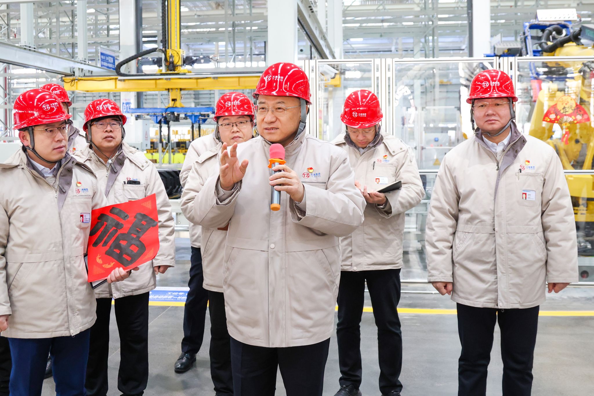 在臂車裝配線現(xiàn)場,韓珍堂察看了智能化改造情況,他說,智能制造對(duì)于提升生產(chǎn)效率、降低成本、增強(qiáng)市場競爭力具有重要意義,是太重未來發(fā)展的關(guān)鍵所在。2025年是太重轉(zhuǎn)型升級(jí)跨越的關(guān)鍵之年,發(fā)展任務(wù)仍然艱巨。作為管理者和經(jīng)營者,必須具備高度的市場敏感性和前瞻性,時(shí)刻保持清醒的頭腦,增強(qiáng)憂患意識(shí)。要勇于解放思想、積極拓寬思路,有效控制成本,力求實(shí)現(xiàn)利潤和價(jià)值的最大化。同時(shí),要全力以赴加快工程進(jìn)度,特別是在營銷上下大力氣,著力強(qiáng)化弱項(xiàng)、深入研究細(xì)節(jié)、前瞻規(guī)劃未來,在激烈的競爭中贏得優(yōu)勢(shì)、贏得主動(dòng)、贏得未來!韓珍堂強(qiáng)調(diào),春節(jié)來臨,務(wù)必堅(jiān)守安全生產(chǎn)底線,從嚴(yán)從實(shí)抓細(xì)抓好安全生產(chǎn)各項(xiàng)工作,確保大家過一個(gè)歡樂、祥和、平安的新春佳節(jié)。
