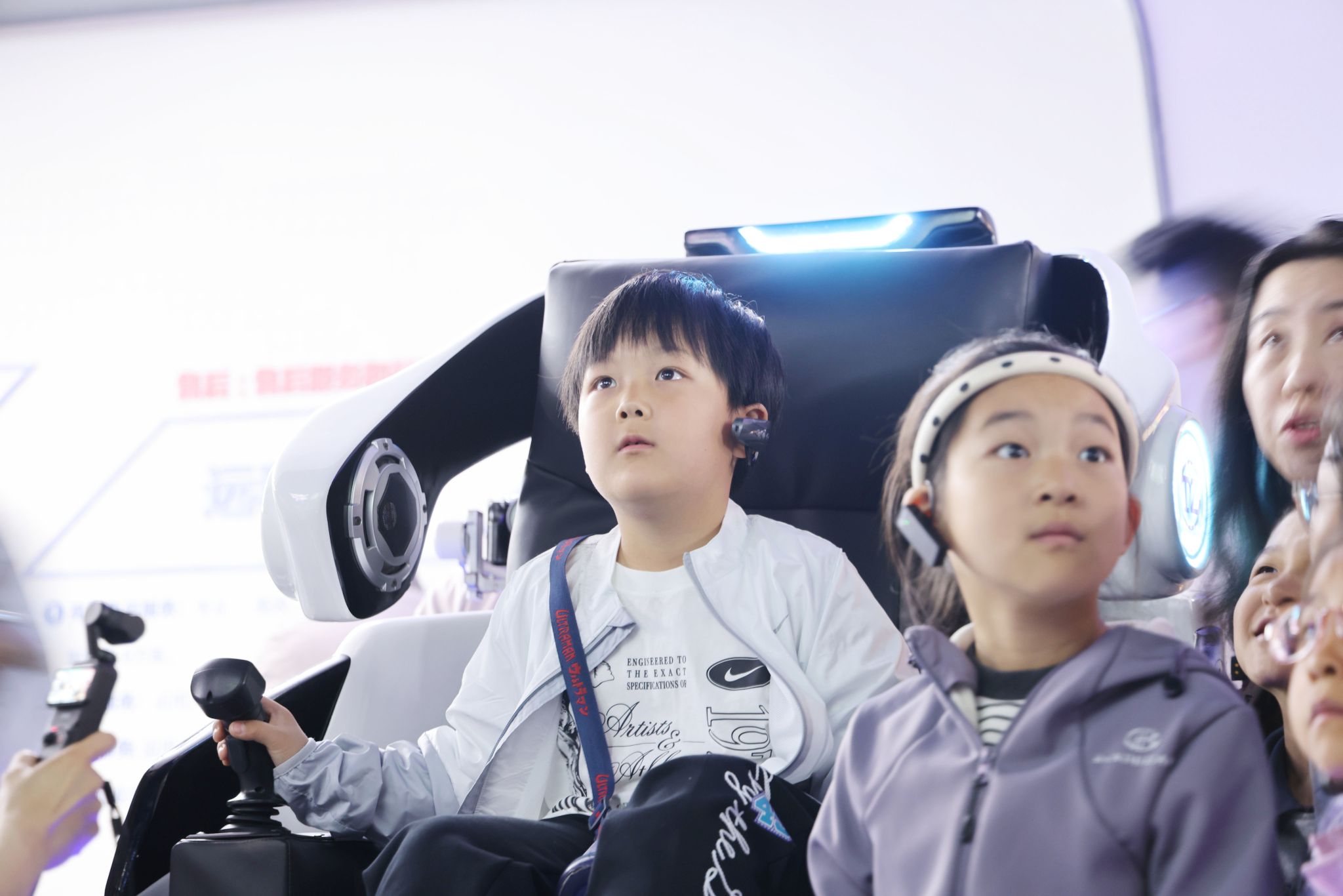 最令人期待的互動(dòng)體驗(yàn)環(huán)節(jié)到來(lái)!萌娃們秒變“未來(lái)工程師”,在智能設(shè)計(jì)終端前大展身手。在5G遠(yuǎn)程操控區(qū),孩子們?nèi)褙炞⒌夭僮鬟h(yuǎn)在千里之外的“巨無(wú)霸”,操作挖掘機(jī)完成裝載,現(xiàn)場(chǎng)驚嘆聲與掌聲此起彼伏。