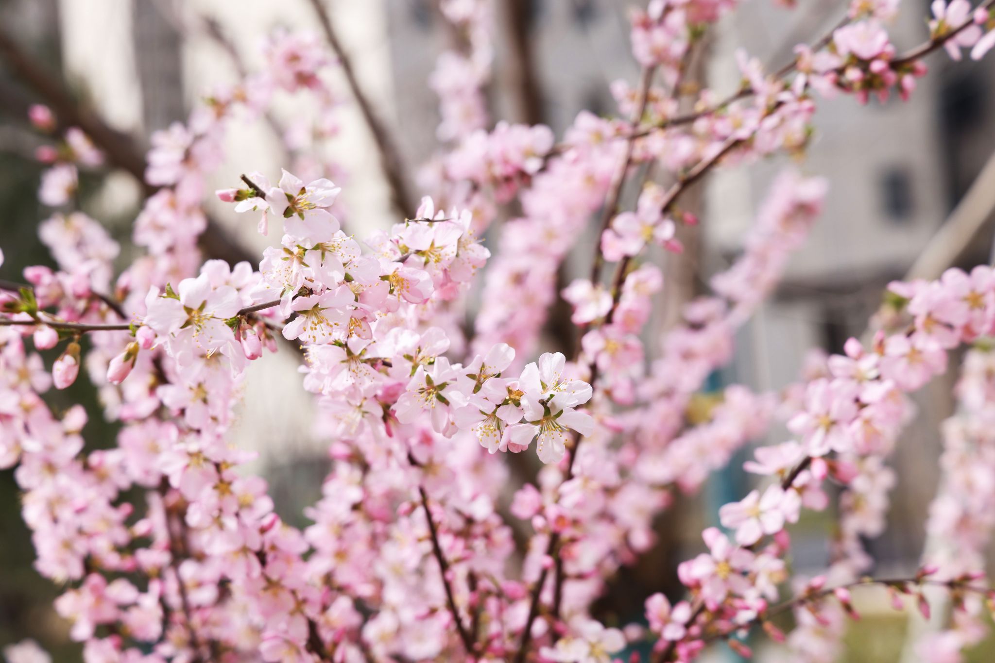 當(dāng)榆葉梅與焊接弧光爭(zhēng)相綻放