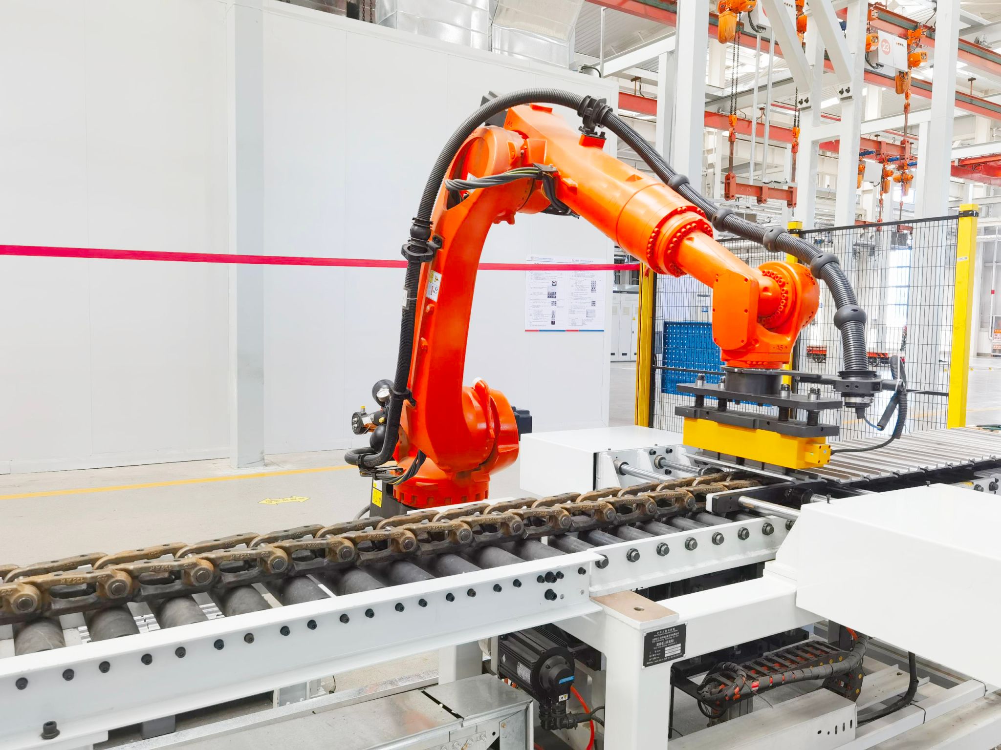 產(chǎn)能創(chuàng)新高,離不開(kāi)數(shù)智技術(shù)的深度賦能。走進(jìn)生產(chǎn)現(xiàn)場(chǎng),機(jī)械臂精準(zhǔn)作業(yè),操作屏數(shù)據(jù)實(shí)時(shí)跳動(dòng),智能“工友”與職工緊密協(xié)作。在3D視覺(jué)系統(tǒng)的精準(zhǔn)引導(dǎo)下,機(jī)械臂靈活完成組裝、壓裝、打卷、浸漆等工序,動(dòng)作行云流水、分毫不差。依托MOM智能管理系統(tǒng),從排產(chǎn)到倉(cāng)儲(chǔ)調(diào)度全程優(yōu)化,并實(shí)現(xiàn)對(duì)每條履帶關(guān)鍵參數(shù)的實(shí)時(shí)監(jiān)控,確保質(zhì)量精準(zhǔn)可控。在這里,AGV智能配送機(jī)器人穿梭不息,實(shí)現(xiàn)了物料流轉(zhuǎn)全自動(dòng)化,整條產(chǎn)線運(yùn)行更加流暢,生產(chǎn)效率與產(chǎn)品品質(zhì)同步躍升。