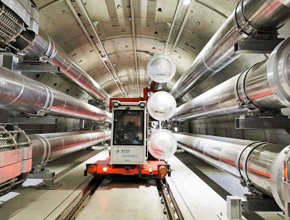 但難題接踵而至:隧道內(nèi)徑有限,管線卻又長又重又嬌貴,傳統(tǒng)的工程機(jī)械連轉(zhuǎn)身都困難,更別提進(jìn)行精準(zhǔn)安裝。面對(duì)難題,太重突破傳統(tǒng),革新工藝、自主研發(fā)專用運(yùn)裝成套裝備,給出了充滿智慧的“太重方案”。