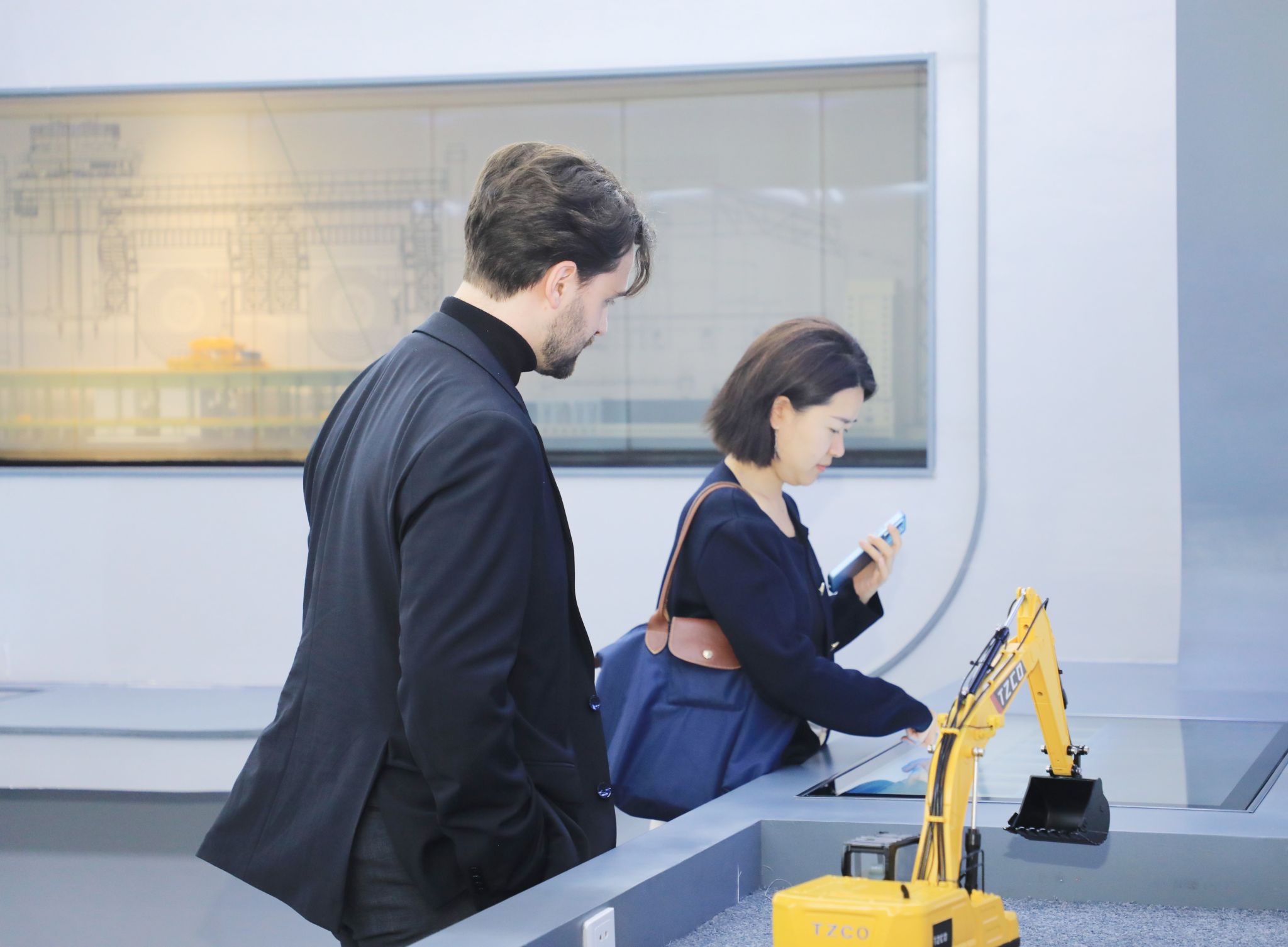 參觀過程中,代表團(tuán)一行沿著太重75年的發(fā)展長(zhǎng)廊,深入了解了公司推動(dòng)重型機(jī)械與工程機(jī)械融合發(fā)展的轉(zhuǎn)型過程。宣傳片《國(guó)之太重》中,一系列高端裝備讓代表團(tuán)直觀感受“大國(guó)重器”的科技含量;在發(fā)射塔架模擬演示區(qū),不少成員舉起手機(jī)記錄這一場(chǎng)景;在5G遠(yuǎn)程操作挖掘機(jī)演示區(qū),大家實(shí)地操作,親眼見證重型機(jī)械在數(shù)字化加持下精準(zhǔn)完成挖掘、行走、卸載等一系列動(dòng)作,紛紛點(diǎn)頭稱贊。期間,大家相互探討、深入交流、不時(shí)詢問,結(jié)下友誼、留下機(jī)會(huì)。