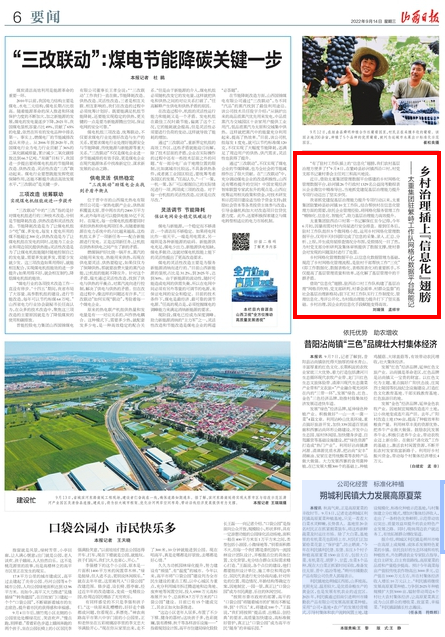今日山西日報以《鄉(xiāng)村治理插上“信息化”翅膀》為題,報道了太重集團積極履行國有企業(yè)社會責任,依托企業(yè)管理經驗,將網格化服務管理工作“精細化、信息化、智能化”,助力基層治理能力高效提升,讓鄉(xiāng)村治理,因企業(yè)信息化手段賦能變得高效。