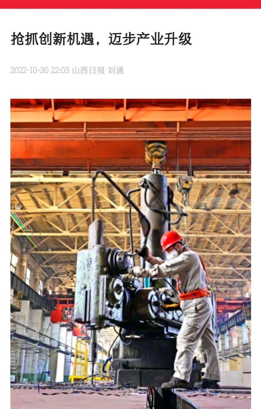 10月30日,山西日報(bào)以《搶抓創(chuàng)新機(jī)遇,邁步產(chǎn)業(yè)升級》為題,對太重集團(tuán)加大工藝技術(shù)創(chuàng)新取得的新突破進(jìn)行報(bào)道。全面深化改革以來,太重集團(tuán)堅(jiān)持改革創(chuàng)新,聚焦智能設(shè)計(jì)、智能制造、智能產(chǎn)品、智能服務(wù),全力推動(dòng)“制造”向“智造”轉(zhuǎn)型升級,持續(xù)提升制造業(yè)的技術(shù)含量,賦能公司高質(zhì)量高速度發(fā)展。