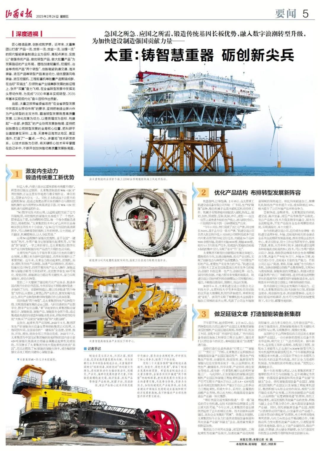 今日,山西日報(bào)整版刊發(fā)《太重:鑄智慧重器 礪創(chuàng)新尖兵》文章,深入報(bào)道了太重集團(tuán)深耕智能制造,厚植創(chuàng)新發(fā)展的生動(dòng)實(shí)踐。作為全省唯一“雙鏈主”企業(yè),太重集團(tuán)以科技創(chuàng)新賦能轉(zhuǎn)型發(fā)展,探索科技創(chuàng)新和高端裝備制造產(chǎn)業(yè)深度融合的發(fā)展道路,為推動(dòng)中國“智”造、建設(shè)制造強(qiáng)國做貢獻(xiàn)。