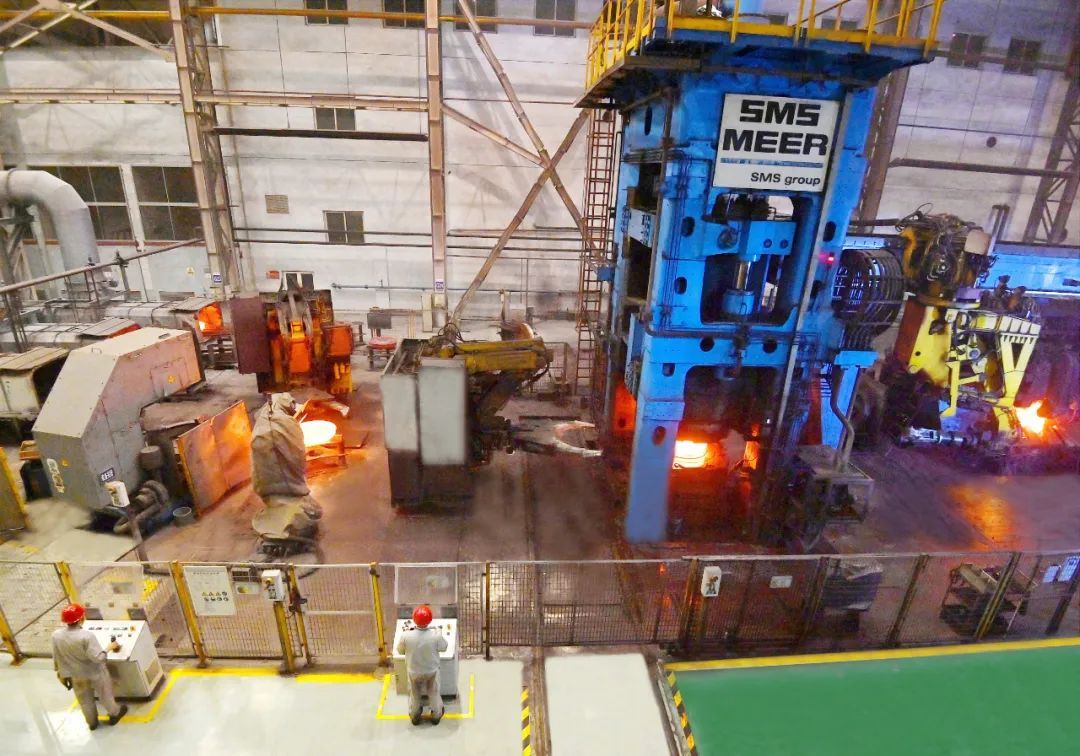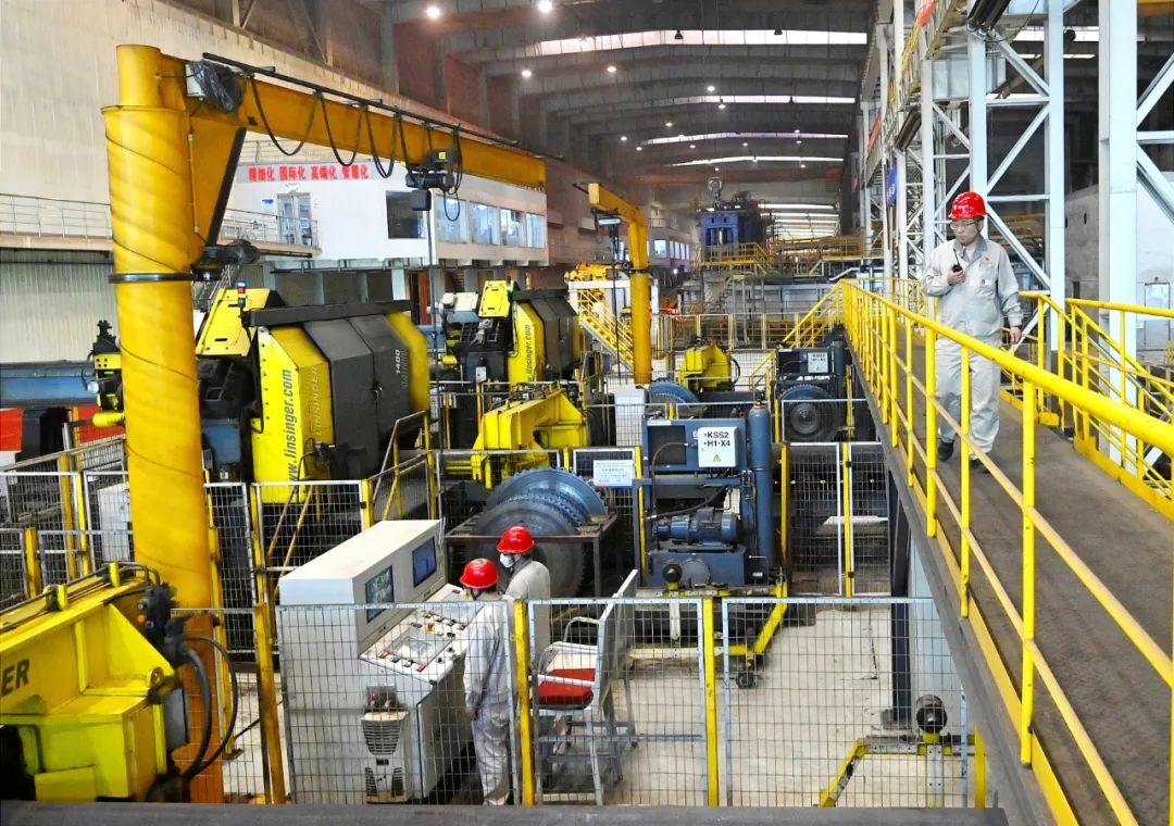 車輪廠二線鍛軋工部正在進(jìn)行緊張的車輪鍛造任務(wù),設(shè)備運維人員為準(zhǔn)時制生產(chǎn)保駕護航