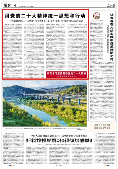 人民日報刊發(fā)的《用黨的二十大精神統(tǒng)一思想和行動——學(xué)習(xí)貫徹黨的二十大精神中央宣講團在廣東、山西、山東、四川和中國人民大學(xué)宣講》文章,對公司職工王永晶進行了采訪報道。