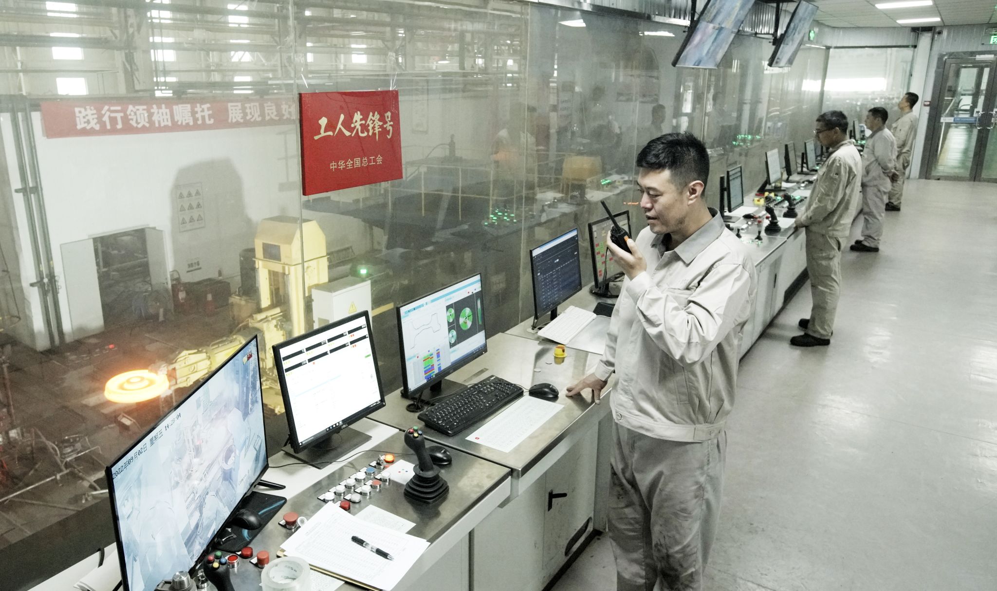 鍛熱工部負責車輪的加熱、預成型、成型、沖孔、軋制和壓彎及車輪擴氫、退火、淬火、正火和回火等工序。2019年鍛熱工部共生產車輪總數18萬件左右,超額完成俄羅斯8萬余件車輪交貨任務。2020年不斷優(yōu)化浸入式淬火臺滿足美國輪箍的生產和交貨需求,對噴淋淬火臺進行升級改造。2021年工部不斷統(tǒng)籌安排,合理優(yōu)化設計,自發(fā)組成突擊隊,保證了項目“當年立項、當年實施、當年投產”,其中中徑14米環(huán)形爐僅用時85天順利交付使用,第一片熱軋車輪于2021年12月31日成功下線。