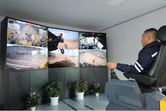 公司為霍林河南露天煤礦提供的WK-12C電鏟,配備了遠(yuǎn)程操控智慧化解決方案。通過對(duì)現(xiàn)場(chǎng)畫面、聲音、振動(dòng)等環(huán)境感知和模擬,用戶可以在距離現(xiàn)場(chǎng)10km之外的遠(yuǎn)程操作室,對(duì)電鏟進(jìn)行操作控制,全鏈路延時(shí)控制在250ms以內(nèi)。