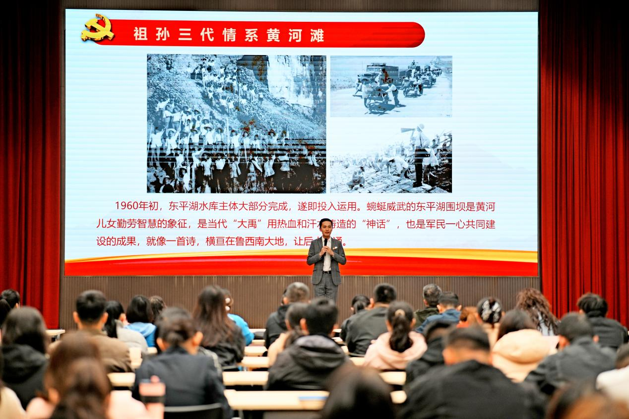 山東招標(biāo)股份有限公司工會(huì)主席、宣傳部部長呂廣岳帶來《守黃治黃的“黃三代”》,通過祖孫三人與黃河之間的深厚羈絆,勾畫出一部從大河桀驁不馴到歲歲安瀾的治黃史,展現(xiàn)了一代代治黃人踐行黃河國家戰(zhàn)略、接力守護(hù)母親河的傳承與擔(dān)當(dāng)。