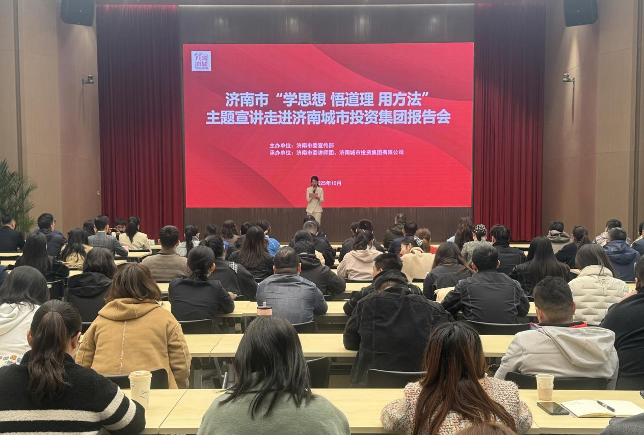 為深入學(xué)習(xí)貫徹習(xí)近平新時(shí)代中國特色社會(huì)主義思想,廣泛培育和踐行社會(huì)主義核心價(jià)值觀,扎實(shí)推動(dòng)黨的創(chuàng)新理論“飛入尋常百姓家”,10月28日下午,濟(jì)南市委講師團(tuán)團(tuán)長劉健、副團(tuán)長呂桂紅帶領(lǐng)“學(xué)思想 悟道理 用方法”主題宣講團(tuán)走進(jìn)濟(jì)南城投集團(tuán)。集團(tuán)各所屬企業(yè)宣傳部門負(fù)責(zé)人、新發(fā)展黨員及宣講骨干共130余人參加活動(dòng)。